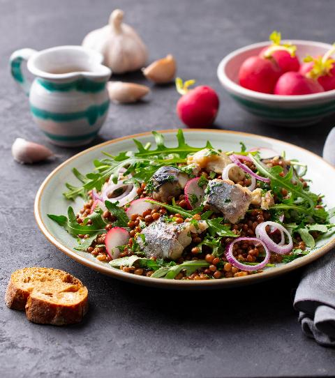 Herring and lentil salad